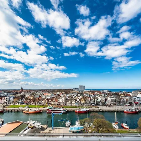 Overlooking the urban, the beachfront 1-bedroom Kurparkblick Apartment Rostock is just 0.7 miles from Am Strom in Rostock. Staying in this apartment, nestled a short way from Warnemunde Church, guests can relax on a patio.